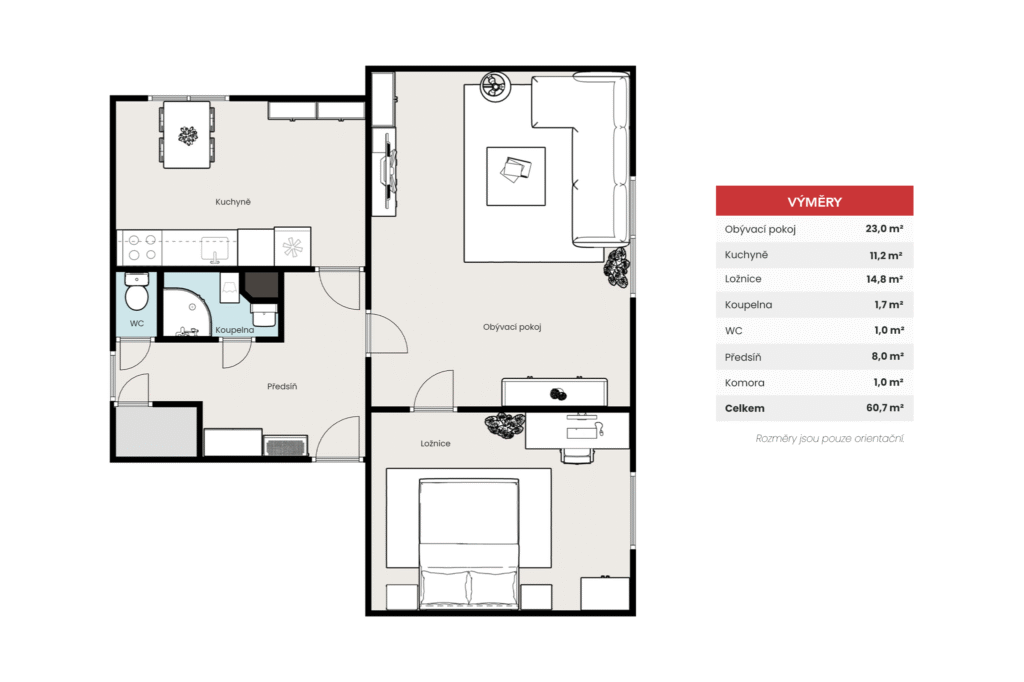 Nabízíme k prodeji světlý a prostorný byt o dispozici 2+1, který se nachází v klidné a vyhledávané lokalitě Dolního Bousova. Tato nemovitost o celkové užitné ploše 61 m² je v osobním vlastnictví a je situována ve zvýšeném přízemí udržovaného cihlového domu. Byt je ve velmi dobrém a pečlivě udržovaném stavu, přičemž v nedávné době prošel modernizací, která zahrnovala instalaci nové kuchyňské linky a rekonstrukci elektrických rozvodů. Tepelný komfort i úsporu energií zajišťují osazená plastová okna.